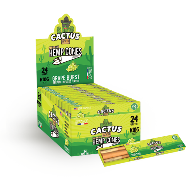 Pre Rolled Hemp Cones Grape Burst King Size 6 Cone Each Pack (24 Packs)